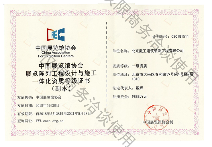 戴工集團現(xiàn)為中國建筑裝飾協(xié)會、中國室內(nèi)裝飾協(xié)會、北京市建筑業(yè)聯(lián)合會會員、北京室內(nèi)裝飾副會長單位、北京市建筑裝飾協(xié)會的理事會員單位,誠信五星級單位、質(zhì)量AAA級單位。